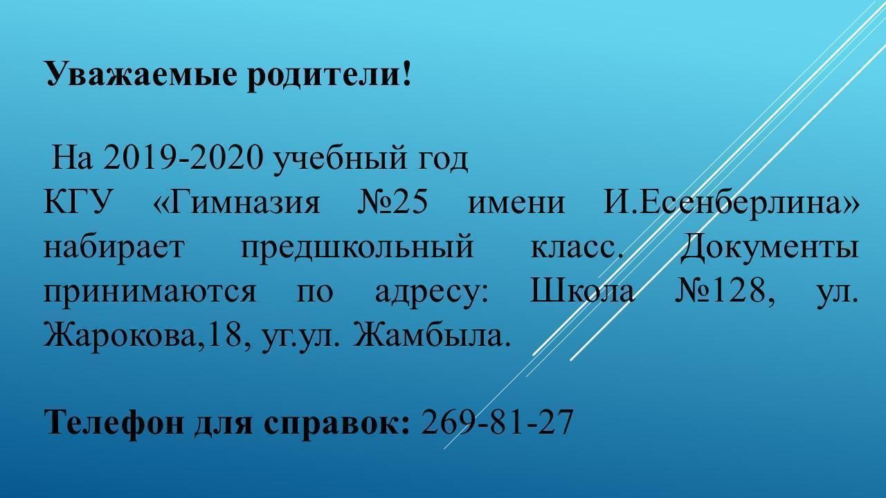 КГУ «Гимназия №25 имени И. Есенберлина» Управления образования города Алматы