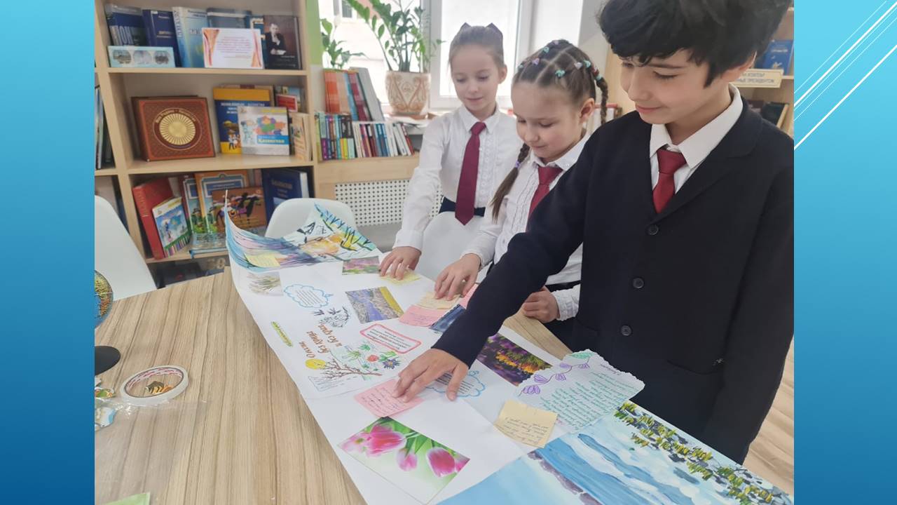 Своё настроение учащиеся 3 «Е» класса выразили в Библиотечном весеннем квилте «О, весна без конца и без края…»
