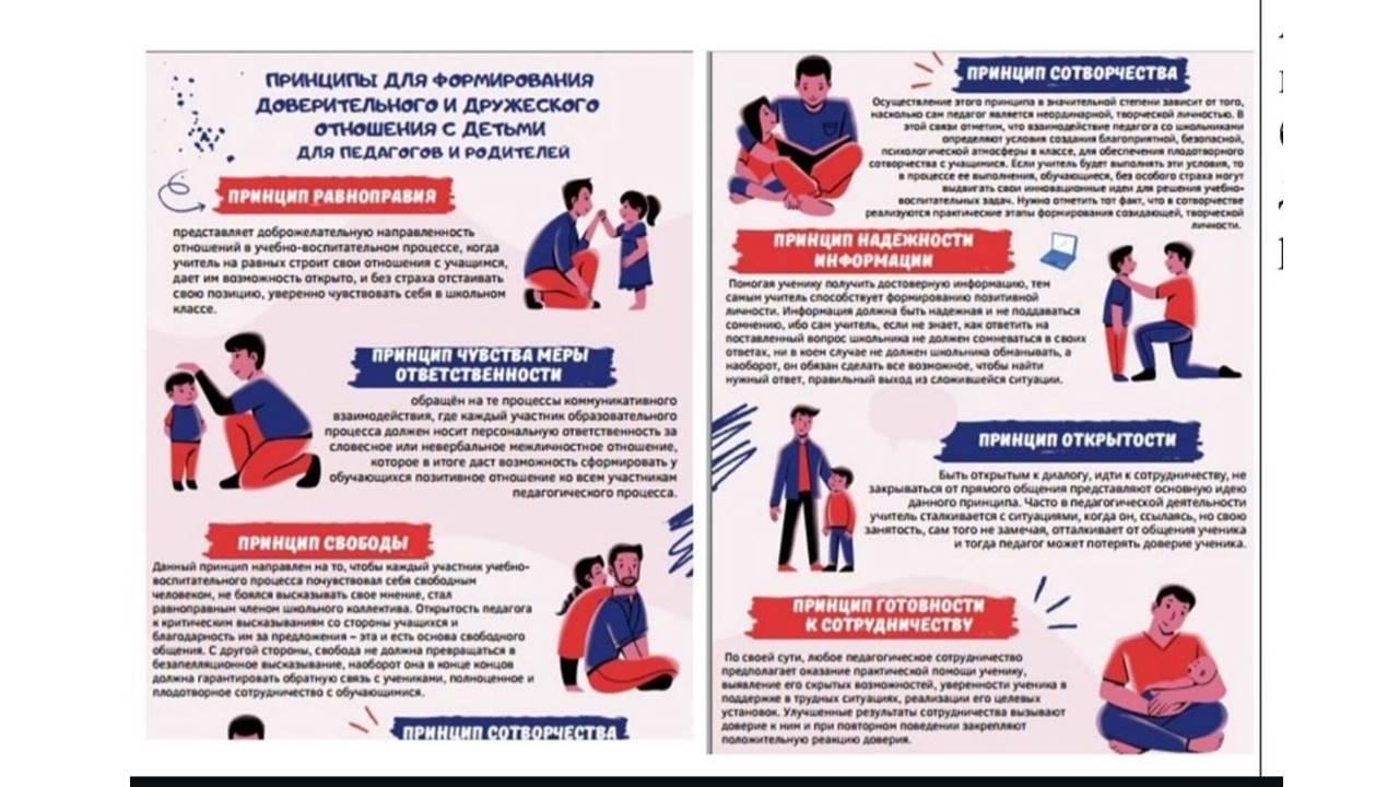 10 октябрь 2024 0 1 2 3 4 5 Принципы для формирования доверительного и дружеского отношения с детьми для педагогов и родителей