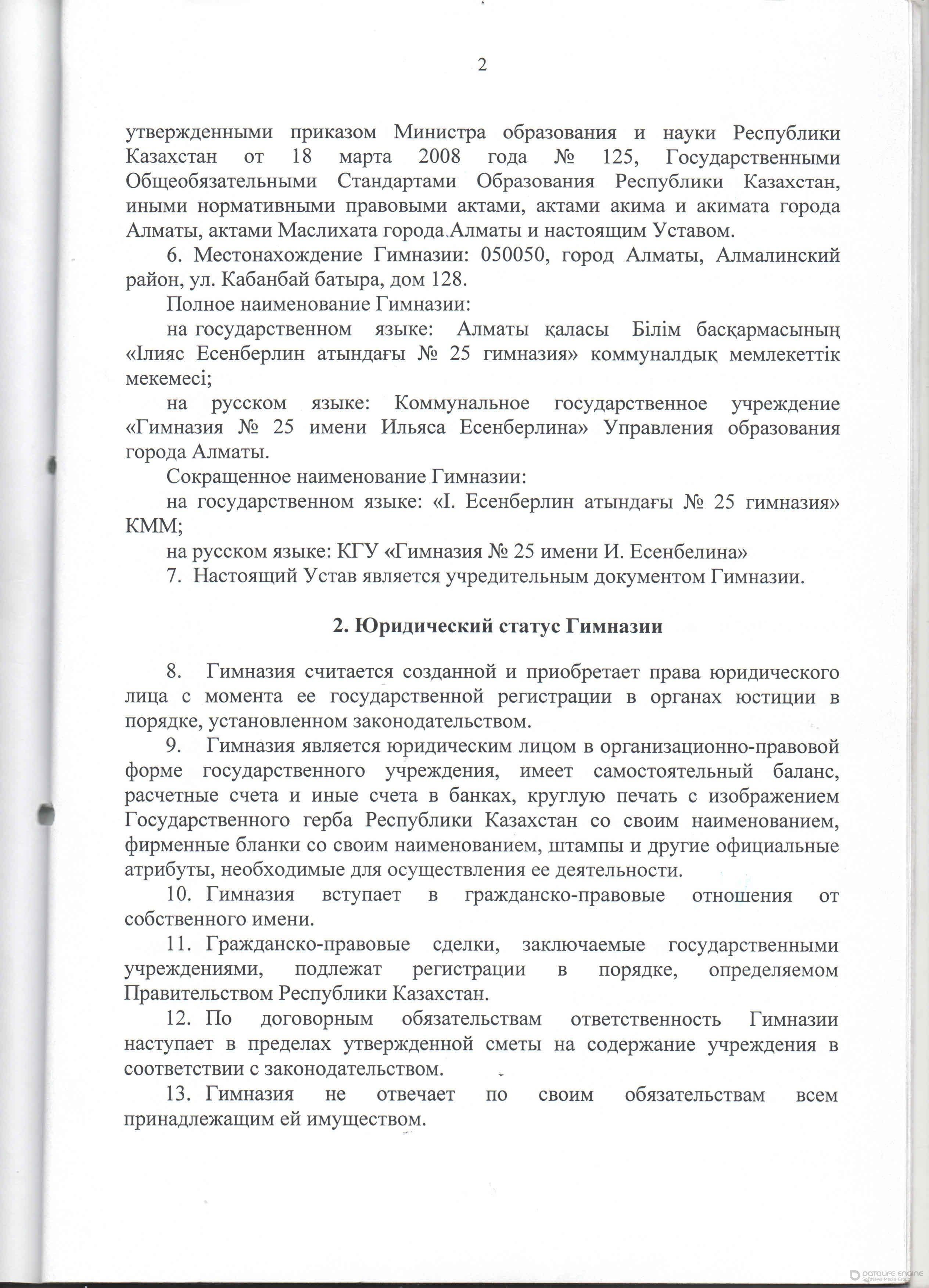 КГУ «Гимназия №25 имени И. Есенберлина» Управления образования города Алматы